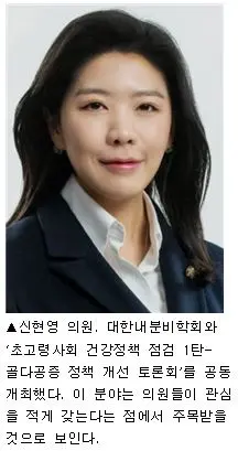 우리나라 의보당국은 이미 초고령사회로 접어 들었음에도, 의료보험재정 부담을 우려, 오히려 급여를 제한하고 있어, 신현영 의원의 이 토론회 개최는 "큰 의미를 갖는다"는 평을 듣을 수 있을 것으로 보인다.