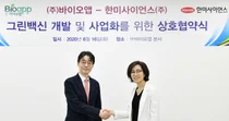 식물 기반 단백질 생산 플랫폼 기술로 ‘그린바이오’ 혁신 본격화대규모 시설 필요한 바이오 공정 뛰어 넘는 그린바이오 공법 도입 바이오앱 원천 기술 기반 코로나바이러스감염증-19 백신 개발도 ▲협약식.